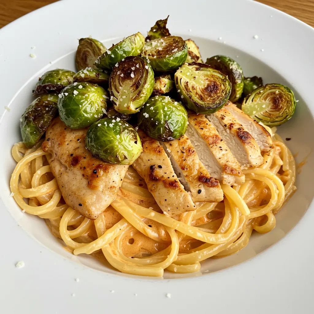 Cooking Time Efficiency: The key is multitasking. Get the sprouts in the oven, then immediately get the pasta water on to boil. While those two things are going, you can prep and cook your chicken. The sauce comes together in the last 10 minutes. It feels like a lot, but the timing overlaps nicely.